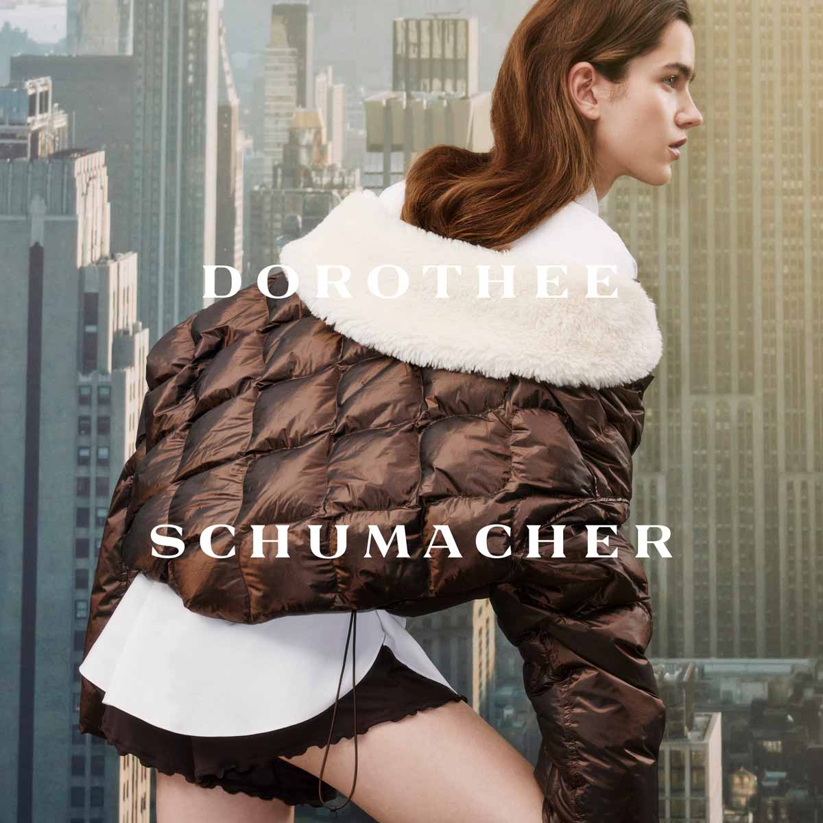 Dorothee Schumacher wurde 1966 im Herzen von Düsseldorf geboren und ist heute eine renommierte Unternehmerin und Modeschöpferin für Damen. Die in Mannheim ansässige Schumacher GmbH entwickelt, konzeptioniert und vertreibt das Label Dorothee Schumacher. Schon seit Ende der 1980er Jahre steht das Modelabel für elegante und zugleich verspielte Mode. Sie zeichnet sich besonders durch einen hohen Tragekomfort aus. Die zarten Stoffe mit ihren niedlichen Details bilden die Basis für die wunderschönen, femininen Kreationen mit dem gewissen „Extra“.